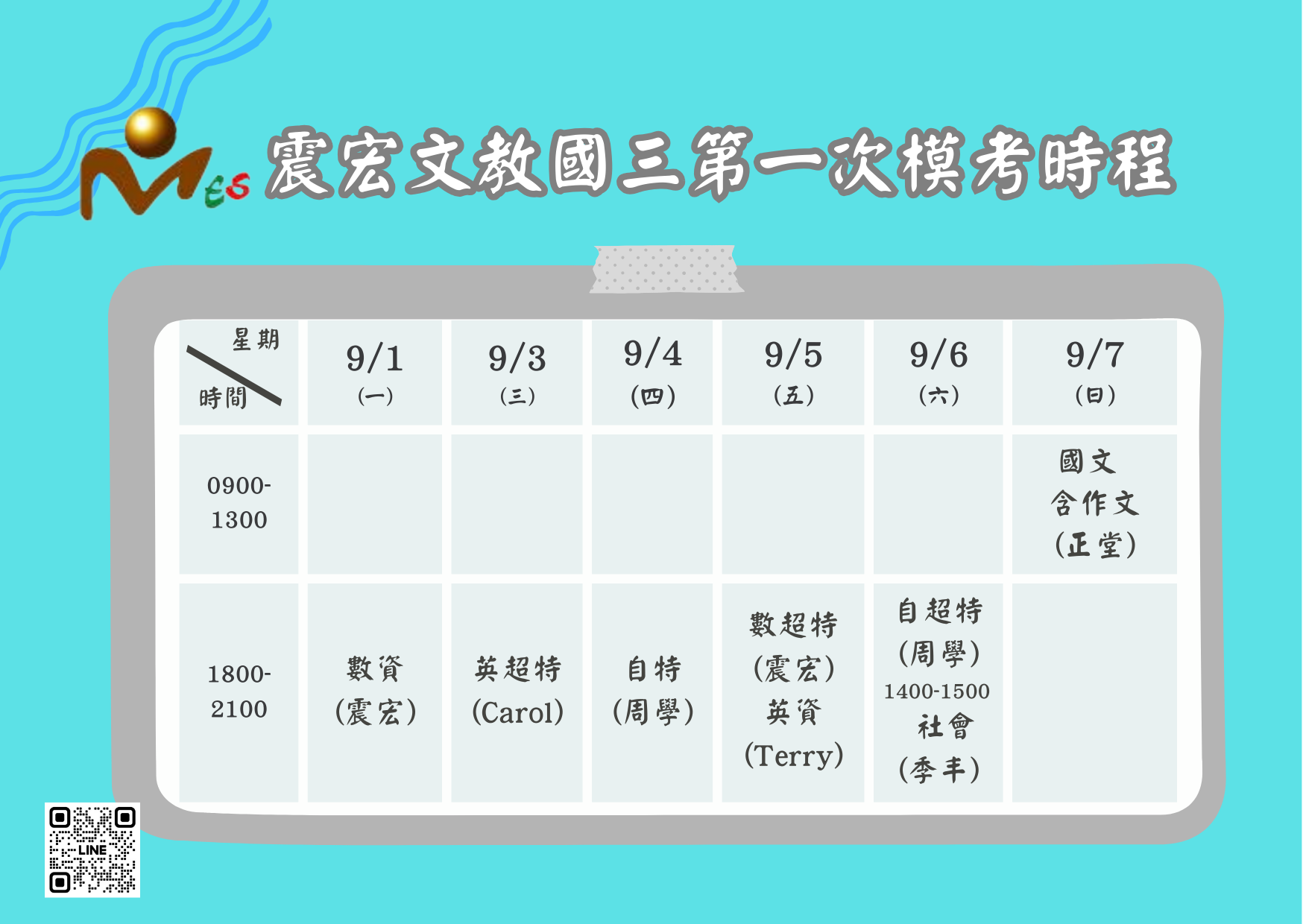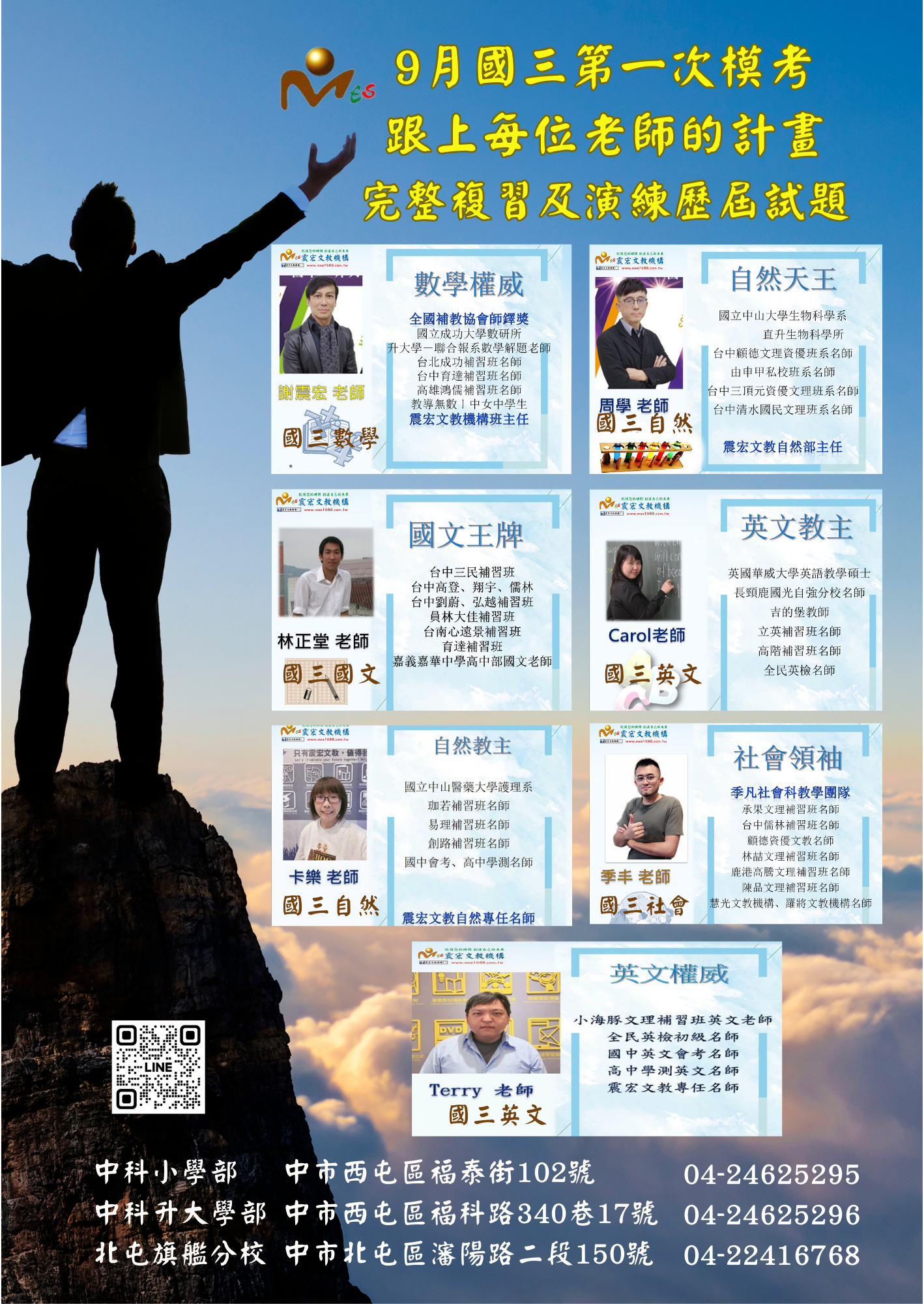 9月國三中投區第一次模考!! 跟上每位老師的計畫 完整複習及演練歷屆試題~~加油祝金榜題名!!