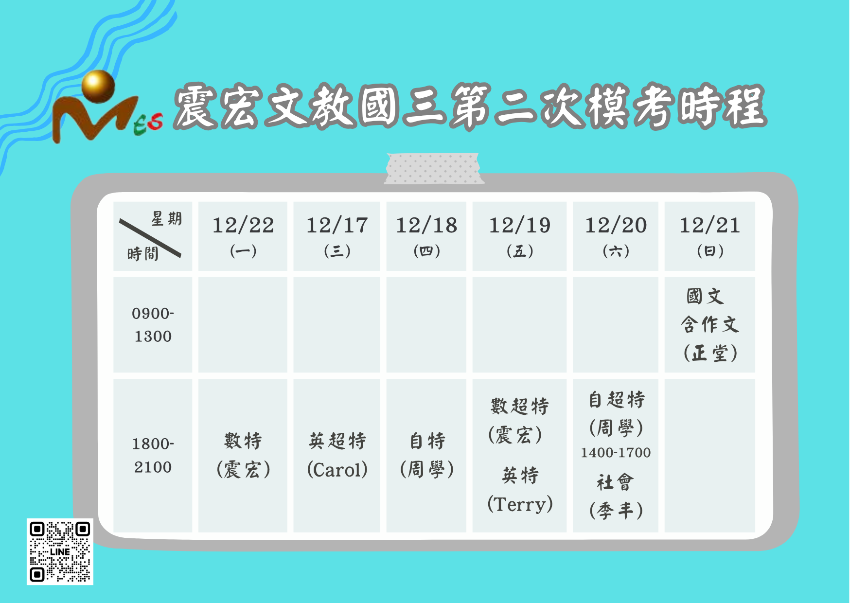 12月國三中投區第二次模考!! 跟上每位老師的計畫 完整複習及演練歷屆試題~~加油祝金榜題名!!