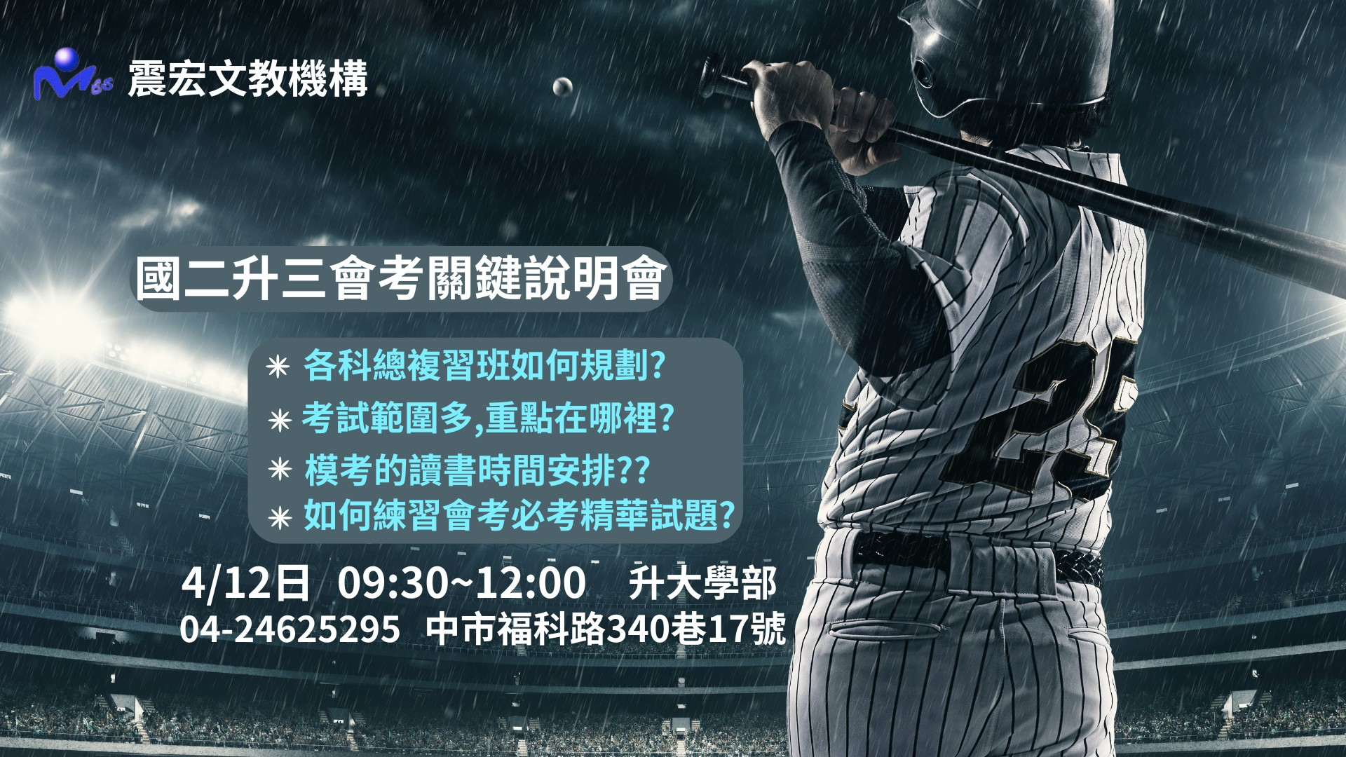我們將在4/12(日)舉辦升國三會考關鍵說明會,