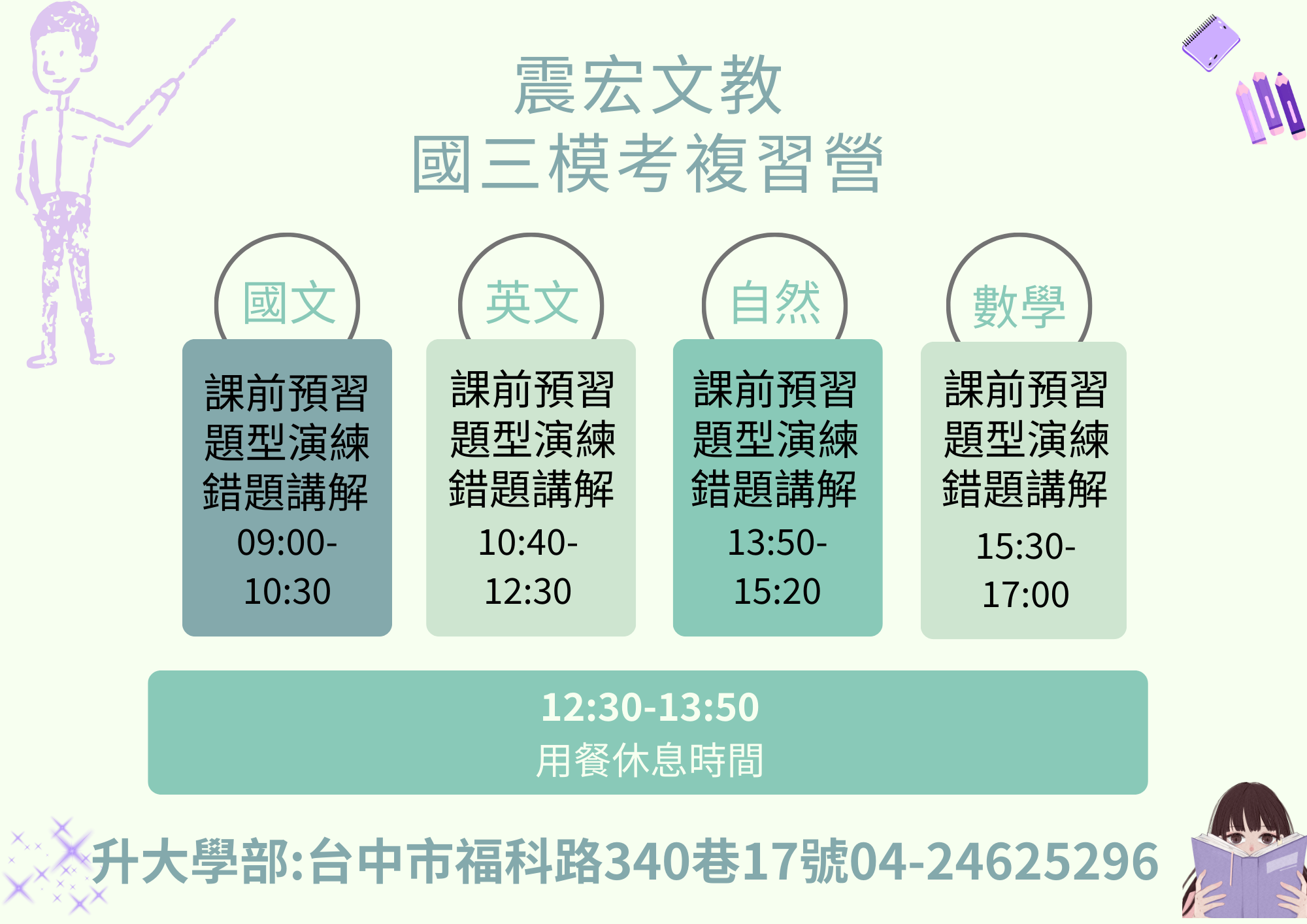 震宏文教機構西屯校~~12/21(日)模考前複習營