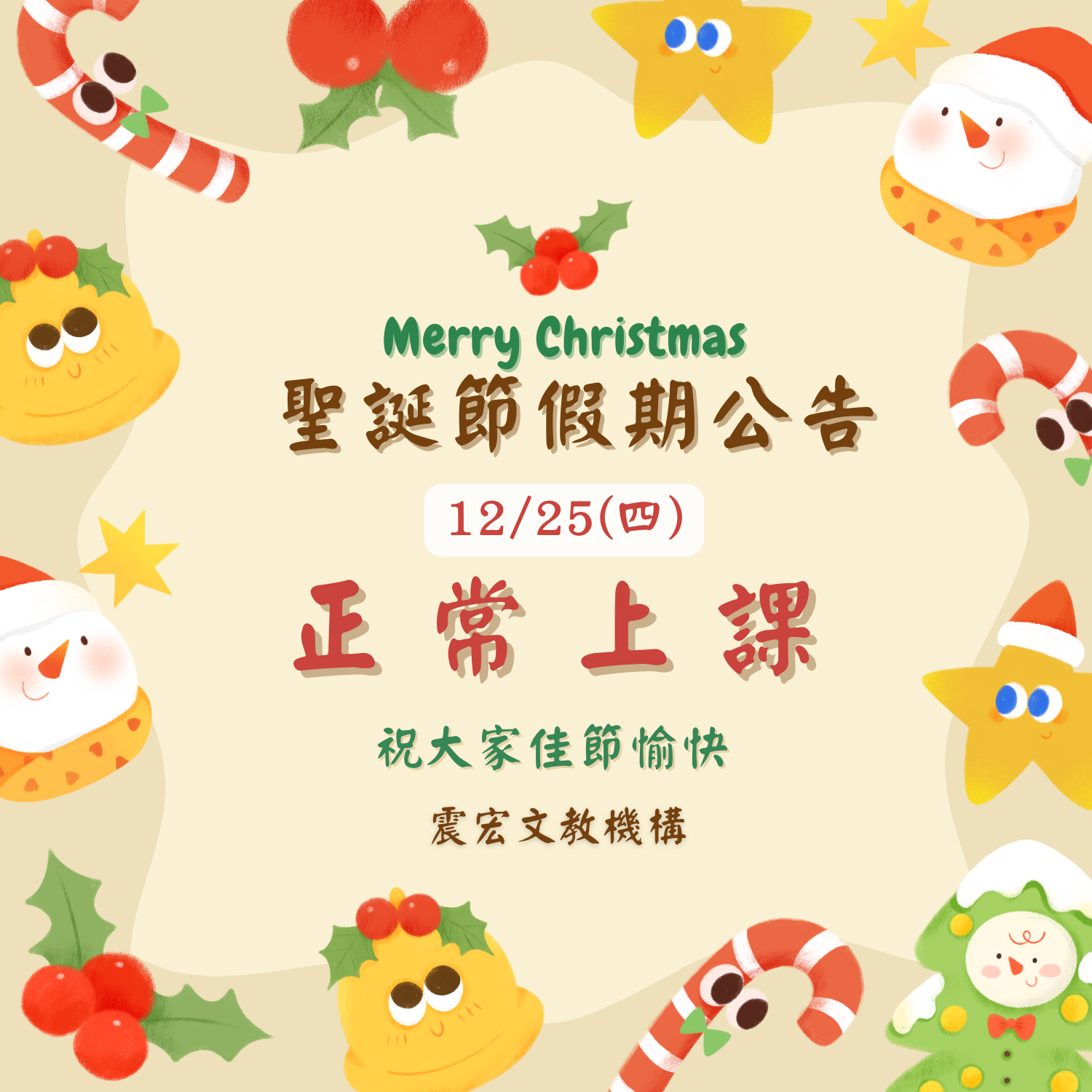 114年震宏文教 聖誕節佳節快樂~幸福安康,祝福好事連連發生!