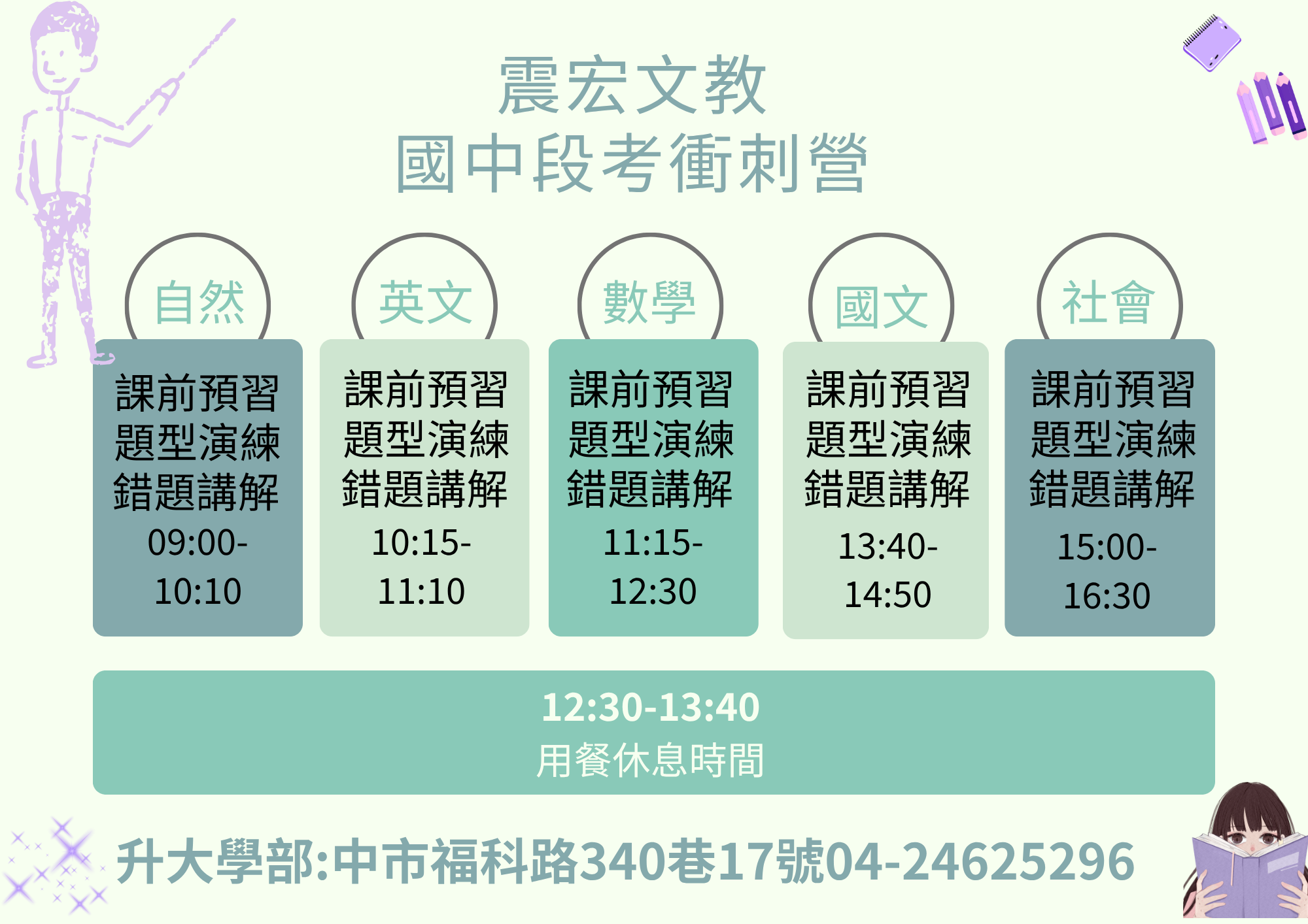 震宏文教機構西屯校~~3/22(日)考前複習營